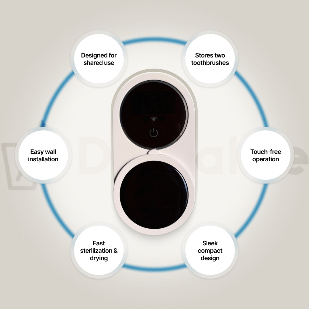 Holds and sterilize up to 2 toothbrushes - perfect for shared spaces.